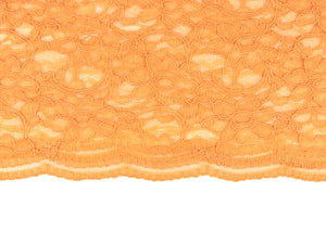 Wunderschöne Spitze mit einer an der Webkante verlaufenden Bogenkante. Die Bogenkante ist auf beiden Seiten. Die Spitze ist leicht dehnbar. Farbe: apricot Material: 45%Baumwolle/55%Nylon Breite: 135cm Gewicht: ca. 160g/m² Waschbar bei 30 Grad Feinwäsche in einem Wäschenetz und nicht in den Trockner geben. Bügeln Stufe 1.