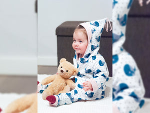 Weicher Baumwolljersey "Jesse" von Swafing Stoffe. Muster: Walfische Farbe: weiß - bunt Material: 95% Baumwolle / 5% ElastanBreite: 160cm Gewicht: 200g/m² Zertifizierung: Öko-Tex-Standard 100 Waschbar bei 30 Grad. Bitte immer auf Links waschen. Nicht in den Trockner geben und nur von Links bügeln auf Stufe 1.