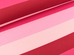 Wunderschöner Softshell "Finn" mit farbiger Innenseite von Swafing Stoffe. Er eignet sich für Jacken, Westen und Hosen. Durch die Fleece-Abseite muss der Swafing Softshell nicht abgefüttert werden - ideal auch für die Übergangszeit! Der Stoff ist sehr angenehm zu tragen und mäßig dehnbar dank seines Elastananteils. Die Streifen haben eine Breite von ca. 4,5cm. Muster: Blockstreifen Farbe: dunkelrot - pink...