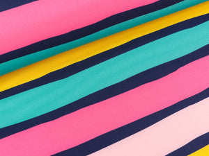 Wunderschöner Softshell "Robin" mit farbiger Innenseite von Swafing Stoffe. Er eignet sich für Jacken, Westen und Hosen. Durch die Fleece-Abseite muss der Swafing Softshell nicht abgefüttert werden - ideal auch für die Übergangszeit! Der Stoff ist sehr angenehm zu tragen und mäßig dehnbar dank seines Elastananteils. Muster: Schmale Streifen Farbe: rosa - pink - gelb - grün - bunt Innenseite:...