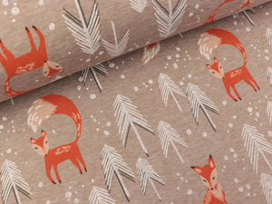 Wundervoller weicher Alpenfleece "Eiger" von Swafing Stoffe. Perfekt für Hoodies, Hosen, Decken, Jacken, Schals, Mützen und vieles mehr. Außen wie ein normaler Sweatshirtstoff, innen ist ein wuschelweicher Kurzflorplüsch. Der stehende Fuchs ist ca. 9,7cm hoch. Muster: Füchse im Winterwald Farbe außen: beige meliert - bunt Farbe innen : dunkelgrau meliert Material: 62% Polyester / 35% Baumwolle/ 3%Elastan Breite: 145cm Gewicht:...