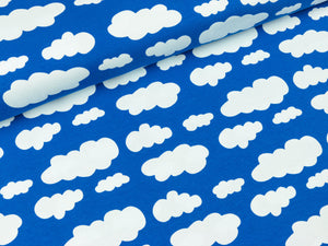 Baumwolljersey Verena Wolken weiß auf Tiefblau