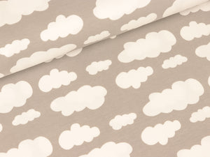 Baumwolljersey Verena Wolken weiß auf Hellgrau