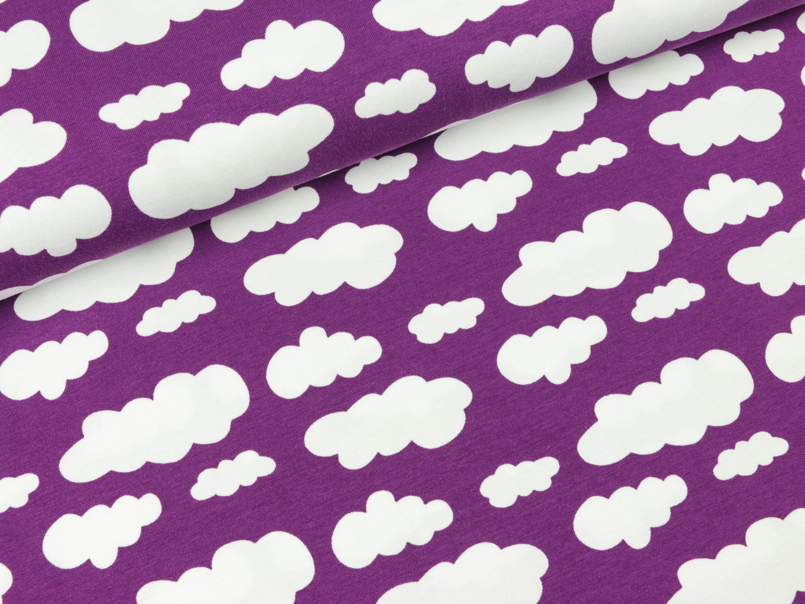 Schöner Baumwolljersey aus der Vicente Serie mit weißen Wolken.
