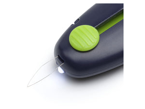 Der LED Nadeleinfädler aus pflaumenblauem Kunststoff ist die moderne Antwort auf den klassischen Nadeleinfädler – diese Einfädelhilfe bringt den Fadenschneider und die Beleuchtung direkt mit. Auf der oberen Seite des mausförmigen Gehäuses befindet sich der Schieber, mit dem die Schlinge aus feinem Federstahl heraus- und hereingeschoben werden kann. In geöffneter Position beleuchtet ein LED-Lämpchen Nadel, Faden und Einfädler. An der...