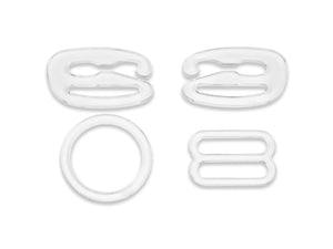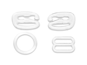Das 12-teilige BH‑Zubehör enthält 4 Feststeller, 4 Ringe und 4 Versteller aus Kunststoff zum Austauschen verschlissener Teile oder für die Herstellung selbst genähter BHs. Mit den Ringen und Feststellern werden, je nach Ausführung des BHs, die Träger mit den Körbchen verbunden. Die Versteller werden zum Einstellen der Trägerlänge vorne und hinten verwendet. Alle Teile sind aus robustem Kunststoff gefertigt und...