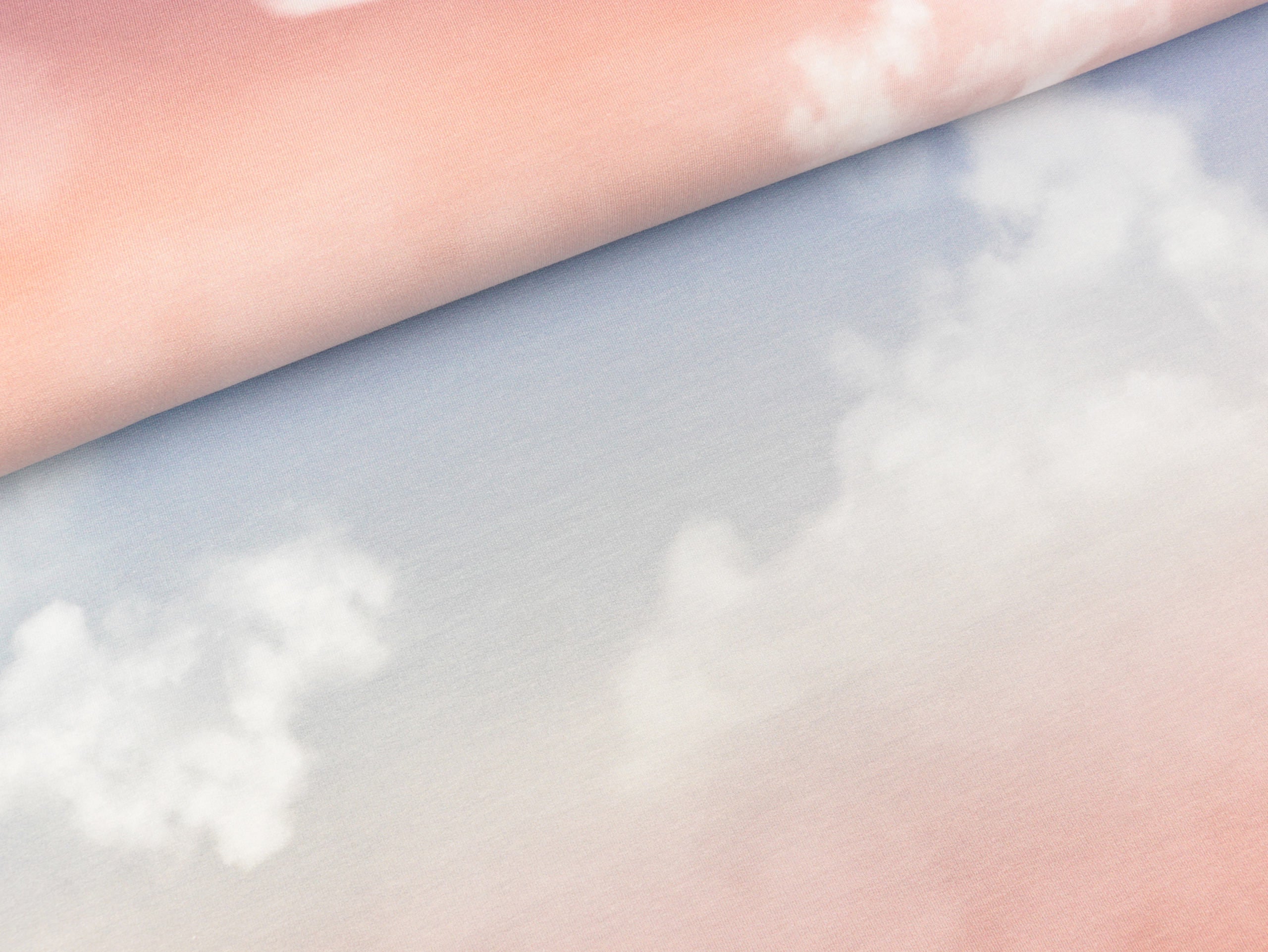 Der fotorealistische Digitaldruck ziert zarte Schleierwolken und üppige Schäfchen- und Quellwolken. Der Stoff ist innen nicht angeraut.
