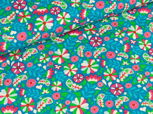 Baumwollpopeline"Butter Bloom"by Jolijou türkisWunderschöne Baumwollpopeline mit einem Blumenmuster und Schmetterlingen.Material: 100%BaumwolleÖko-Tex-Standard 100Breite: 148 cmGewicht ca. 130 g/m²Waschbar bei 30 Grad.Weitere Stoffe der Serie findet ihr ebenfalls unter Butter Bloom im Shop.