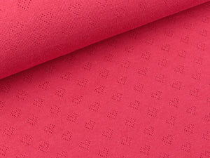 Innovativer feiner und hochwertigster Lochstrick mit einem Herzmuster. Sei es für Strickkleider, Kinderteile, Mützen, Schals, Decken ... der Kreativität sind keine Grenzen gesetzt. Die Herzen sind ca. 1,1cm hoch und 1,2cm breit. Farbe: azalea uni Design: Hearts Loch Strick Kollektion: Weekender Material: 100% Bio-Baumwolle  Breite: 165cm Gewicht:  350g /Laufmeter Waschbar bei 30 Grad, bitte nicht in den Trockner geben. Bei...