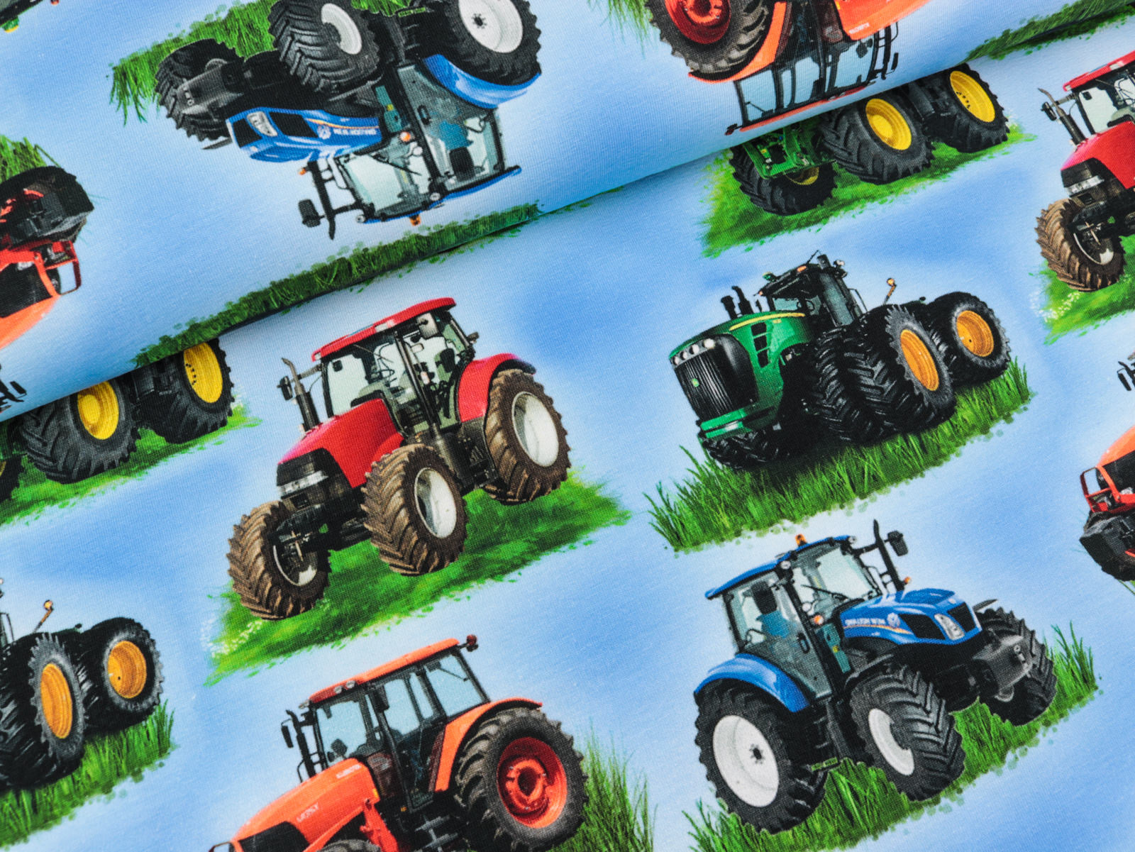 Weicher elastischer Baumwolljersey Tim mit verschiedenen Traktoren.