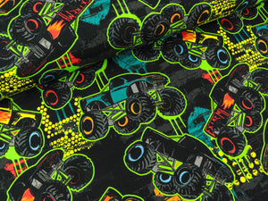 Reststück 58cm - French Terry Petra Monstertrucks bunt auf Schwarz