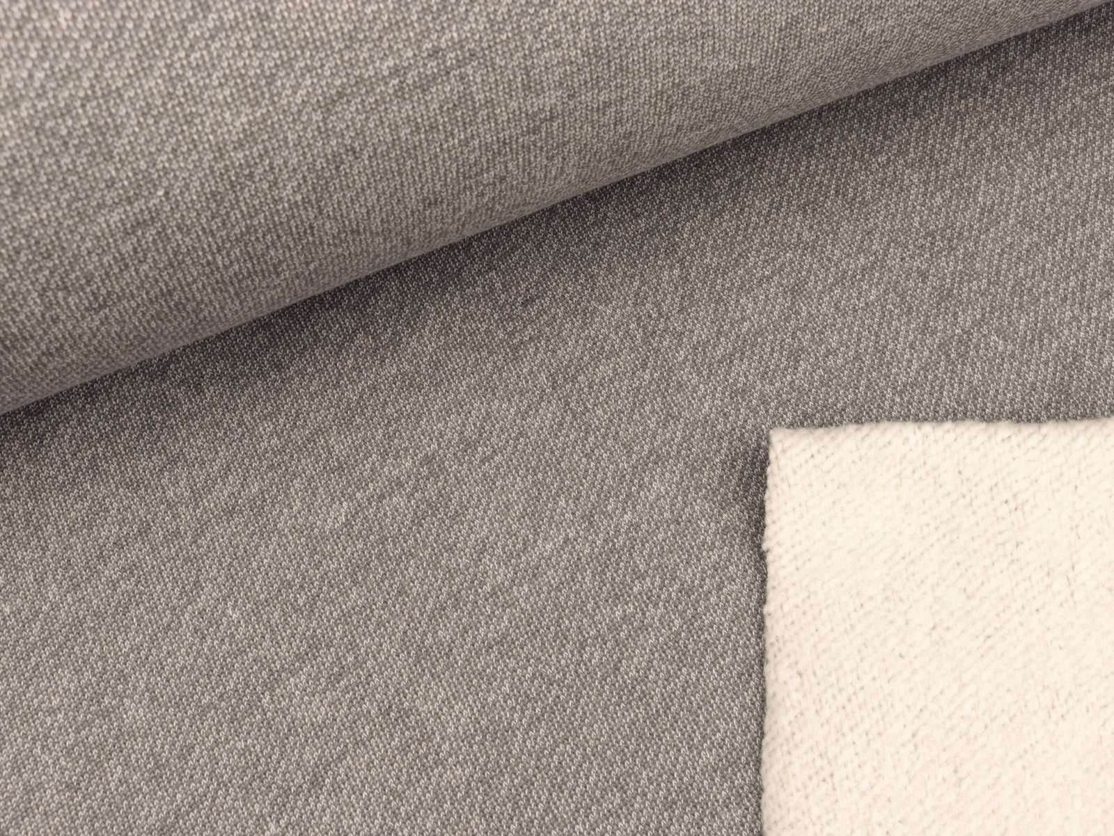 Lammfleece aus 100%Baumwolle. Die Außenseite ist wie ein normaler Sweatshirtstoff, innen hat der Stoff einen kuschligen Kurzflor in weiß.