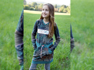 Weicher Modal French Terry "Decode" von Bienvenido colorido für Swafing Stoffe. Der Stoff ist innen nicht angeraut. Der Stoff ist querelastisch und kann problemlos gegen den Fadenlauf zugeschnitten werden. Nelli Simböck decodiert für uns die Modetrends für Herbst und Winter: Die trendige, gepixelte Bordüre ist etwas ganz Besonderes. Das graphische Design erstreckt sich über die gesamte Stoffbreite von ca. 150...