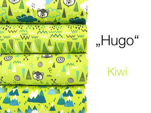 Wunderschöner weicher Baumwollsweat aus der "Hugo" Serie der Firma Swafing Stoffe. Der Stoff ist innen kuschlig weich angeraut. Muster: Hugo im Wald Farbe: kiwi Material: 95%Baumwolle/5%Elastan Breite: 150cm Gewicht: ca. 285 g/m² Waschbar bei 30 Grad.