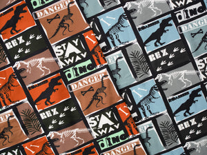 Weicher und elastischer Baumwollsweat "Basel" von Swafing Stoffe. Der Stoff ist innen ganz leicht angeraut. Muster: Dinosaurierpatches Farbe: hellbraun - rost - schwarz Material: 95% Baumwolle / 5% ElastanBreite: 160cm Gewicht: ca. 260g/m² Zertifizierung: Öko-Tex-Standard 100 Waschbar bei 30 Grad. Bitte immer auf Links waschen. Nicht in den Trockner geben und nur von Links bügeln auf Stufe 1.
