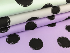 Wunderschöner leichter Sweatshirtstoff BIG DOTS in der Farbe mint. Der Stoff ist innen nicht angeraut. Die Dots haben einen Durchmesser von ca. 9,5cm. Material: 95%Baumwolle/5%Elastan Breite: 145cm Zertifizierung: Öko-Tex-Standard 100 Gewicht: ca. 240g/m² Waschbar bei 30 Grad.