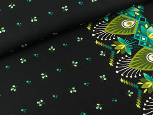 Der einzigartige Griff des Albstoffe Digitaldruck Baumwolljersey-Stoffes wird durch den Einsatz hochwertigster GOTS Bio Garne und einem idealen Stoffgewicht des Druckgrundes erreicht. Entlang einer Webkante verläuft ein bunter Bordürenstreifen. Dieser hat eine Breite von ca. 10,3cm. Kollektion: Sweet Home Farbe: schwarz - bunt Design: Backyard Material: 95% kbA Bio-Baumwolle / 5% Elastan Breite: 165cm (Extrabreit) Gewicht: ca. 365g / Laufmeter...