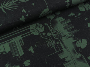 Reststück 54cm - Baumwolljersey Urban Jungle schwarz-khaki by Thorsten Berger