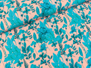 Reststück 40cm - Viskose Webware Believe türkis auf Nude by Cherry Picking