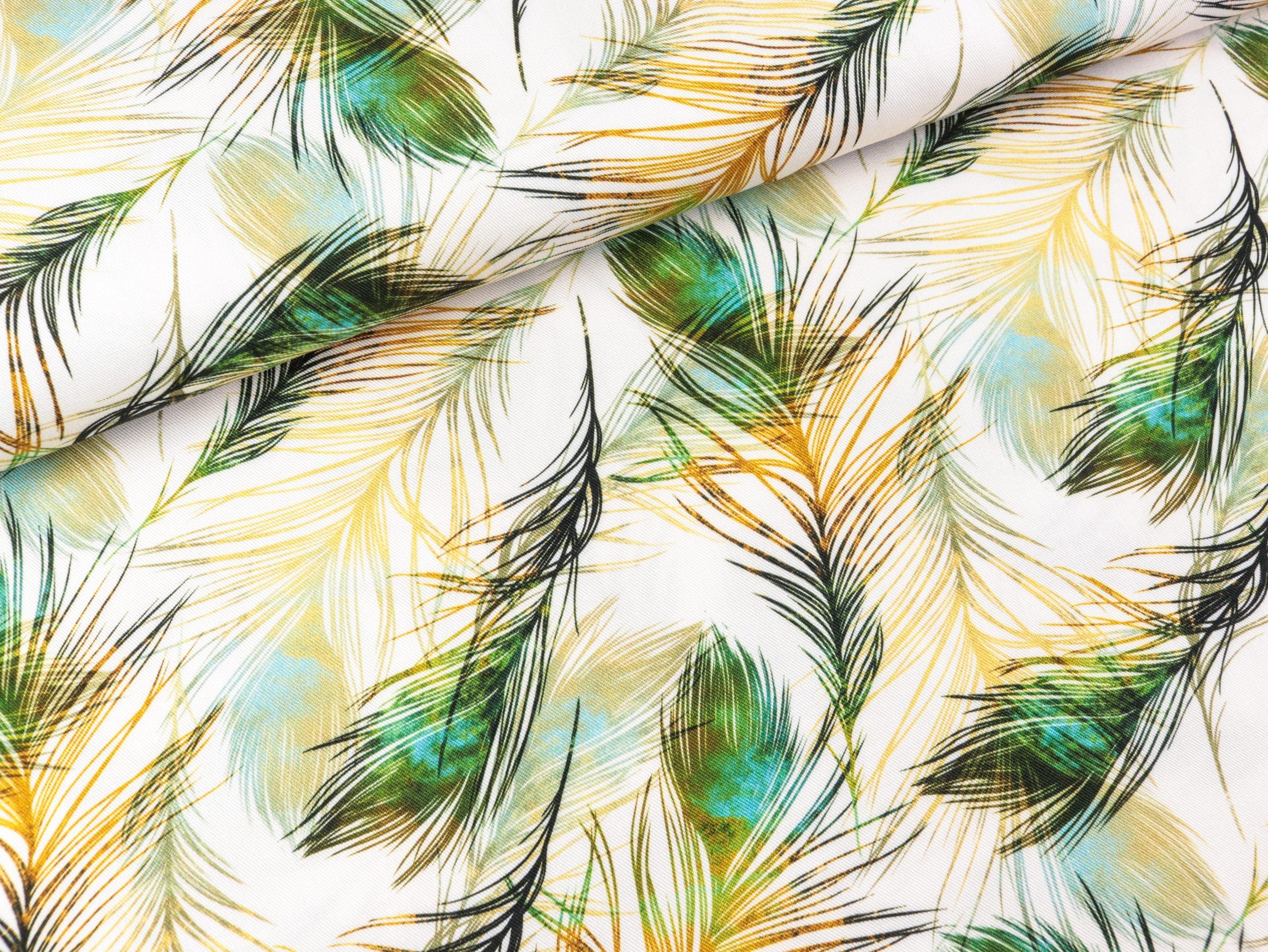 Hochwertiger bedruckter Viskosestoff aus der Kollektion "Tropical Bird" von Thorsten Berger für Swafing Stoffe. Der Stoff hat eine weiche Oberfläche und fällt leicht fließend. Kollektion: Tropical Bird Muster: Federn (großer Allover-Druck) Farbe: rosa - khaki - kiefergrün Bestens geeignet für Kleider, Blusen, Röcke, Hosen oder Schals. Material: 100% Viskose Breite: 144cm Gewicht: 100g/m² Zertifizierung. Öko-Tex-Standard 100 Waschbar bei 30 Grad...