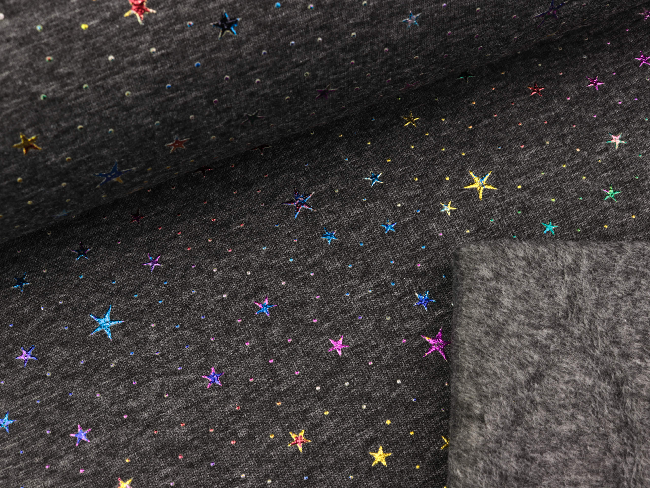 Außen wie ein normaler Sweatshirtstoff, innen ist ein wuschelweicher Kurzflorplüsch.