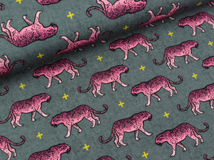 GOTS zertifiziert und knitted in Germany. Der einzigartige Griff des Albstoffe Digitaldruck Baumwolljersey-Stoffes wird durch den Einsatz hochwertigster GOTS Bio Garne und einem idealen Stoffgewicht des Druckgrundes erreicht. Die Leoparden sind ca. 6,4cm lang und 3cm hoch. Kollektion: Check Point Farbe: carbon melange - bunt Design: Leo Material: 95% kbA Bio-Baumwolle / 5% Elastan Breite: 160 cm (Extrabreit) Gewicht: 355g...