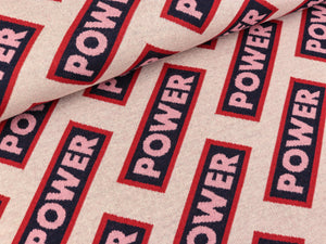 Der atemberaubende POWER aus der brandneuen Life Loves You Edition von Hamburger Liebe. Hochwertigster 4 Farb Jacquard Jersey aus 100% kbA Bio Baumwolle (GOTS) Farbe: meringa - rosa scuro - blue navy - flamme Design: Power Kollektion: Life Loves You Der Schriftzug verläuft diagonal zur Webkante und hat eine Länge von ca. 9,9cm und ist ca. 4cm hoch. Material: 100% kbA...