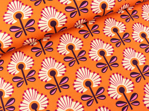 Edler & hochwertiger Hamburger Liebe Bio Baumwoll Digitaldruck auf Canvas! Entlang einer Webkante verläuft ein bunter Bordürenstreifen. Dieser hat eine Breite von ca. 12cm. Die Blumen sind ca. 7,8cm hoch. Kollektion: Only You Farbe: papaia - bunt Design: Beautiful Soul Material: 100% kbA Bio-Baumwolle Breite: 150cm Gewicht: 320g/Laufmeter Separat waschbar bei 30 Grad auf Links, keine hohen Schleudertouren um Waschbrüche...