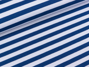 Weicher Baumwolljersey Isa von Swafing Stoffe mit Blockstreifen. Die Streifen sind garngefärbt. Die Streifen haben eine Breite von ca. 1cm. Muster: Streifen Farbe: dunkelblau - hellblau Material: 94% Baumwolle / 6% ElastanBreite: 160cm Gewicht: ca. 220g/m ² Zertifizierung: Öko-Tex-Standard 100 Waschbar bei 30 Grad. Bitte immer auf Links waschen.