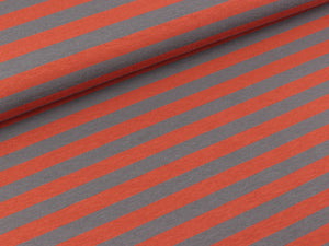 Weicher Baumwolljersey Isa von Swafing Stoffe mit Streifen. Die Streifen sind garngefärbt. Die Streifen haben eine Breite von ca. 1cm. Muster: Streifen Farbe: rost - mittelgrau Material: 94% Baumwolle / 6% ElastanBreite: 160cm Gewicht: ca. 220g/m² Zertifizierung: Öko-Tex-Standard 100 Waschbar bei 30 Grad. Bitte immer auf Links waschen.