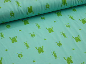Die drei Farbenmix Monster tummeln sich natürlich auch auf hochwertigem Öko-Tex Standard 100 Jersey in drei monsterstarken Farbstellungen: Türkis-Kiwi, Rosa-Rot und Grau-Anthrazit für originelle Nähideen. Der Baumwolljersey mit 5% Elasthananteil in bester Swafing Qualität ist der ideale Stoff für farbenfrohe Nähideen und lässt sich mit vielen Swafing Basics kombinieren. Auf den Monster-Jerseys von Farbenmix stehen die Monster anders als beim...
