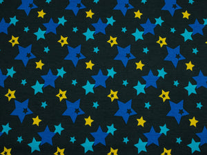 Traumhaft weicher Baumwolljersey "Lovely Stars" designt von Cherry Picking.Sterne in verschiedenen Größen und Farben auf dunkelblauem Untergrund.Material: 95%Baumwolle/5%Elastan Breite: 160cm Waschbar bei 30 Grad. Öko-Tex Standard 100