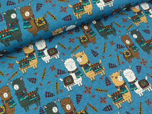Toller Baumwolljersey "Viva Alpaka" von Bienvenido Colorido für Swafing Stoffe. Die Alpakas sind ca. 7,3cm hoch. Muster: Viva Alpaka Farbe: blau meliert - buntMaterial: 95% Baumwolle / 5% ElastanBreite: 160cmGewicht: 200 g/m²Zertifizierung: Öko-Tex-Standard 100Waschbar bei 30 Grad, bitte keine Waschmittel mit optischem Aufheller verwenden.