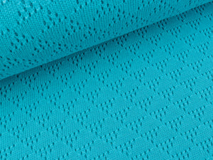 Jacquard-Jersey wird aus farbigen Garnen gestrickt. Die Nadeln werden entsprechend des Designs mustergemäß ausgewählt. Die verschiedenfarbigen Maschenreihen ergänzen sich zum Jacquard-Dessin.