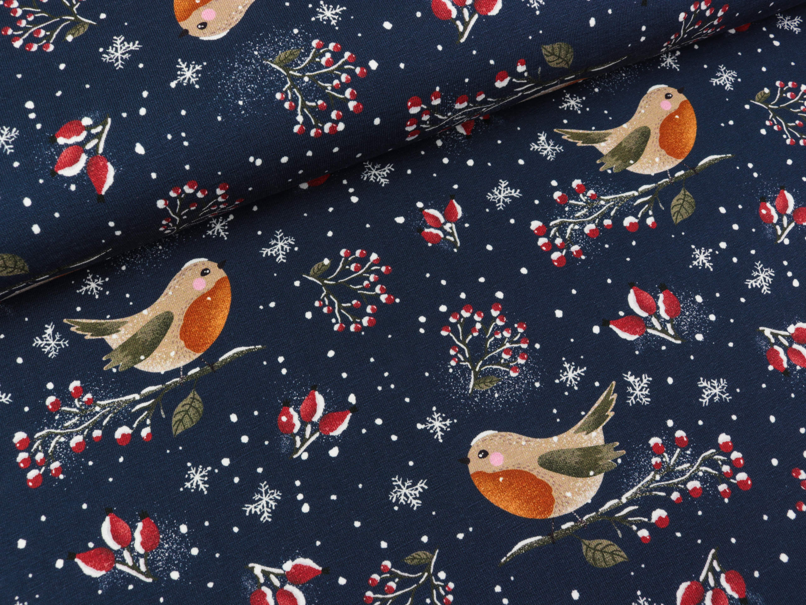 Liebt Ihr es auch, im Winter die Vögel im Garten und in der Natur zu beobachten? Sie fliegen umher, suchen nach Futter und es zwitschert hier und dort. Das Rotkehlchen erkennt man leicht, macht es doch mit seiner prächtig rötlichen Brust und seinem lieblichen Anblick auf sich aufmerksam. Auf Lovely Robin hat das Rotkehlchen auf einem Zweig mit roten Beeren und Hagebutten Platz genommen – darüber rieseln einige Schneeflocken.