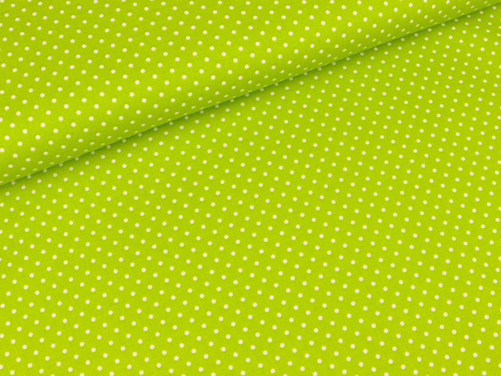 Schöner hellgrüner Baumwollstoff mit kleinen weißen Punkten. Die Punkte haben einen Durchmesser von 2mm.