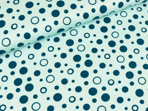 Toller hellblauer Baumwolljersey mit dunkelblauen Bubbledrops. Farbe: dunkelblau - hellblau Material: 95% Baumwolle / 5%Lycra Breite: 160cm Waschbar bei 60 Grad.