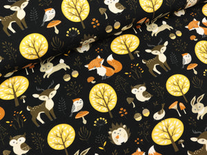 Weicher Baumwolljersey Matti von Swafing Stoffe. Der Fuchs ist ca. 4cm hoch und 5,2cm breit. Muster: Waldtiere Farbe: schwarz - bunt Material: 95% Baumwolle / 5% ElastanBreite: 150 cm Gewicht: ca. 200 g/m ² Zertifizierung: Öko-Tex-Standard 100 Waschbar bei 30 Grad. Bitte immer auf Links waschen. Nicht in den Trockner geben und nur von Links bügeln auf Stufe 1.