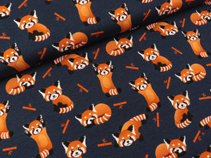 Weicher Baumwolljersey "Jesse" von Swafing Stoffe. Der sitzende Panda ist ca. 4,6cm hoch. Muster: Pandabären Farbe: dunkelblau - bunt Material: 95% Baumwolle / 5% ElastanBreite: 160cm Gewicht: 200g/m² Zertifizierung: Öko-Tex-Standard 100 Waschbar bei 30 Grad. Bitte immer auf Links waschen. Nicht in den Trockner geben und nur von Links bügeln auf Stufe 1.
