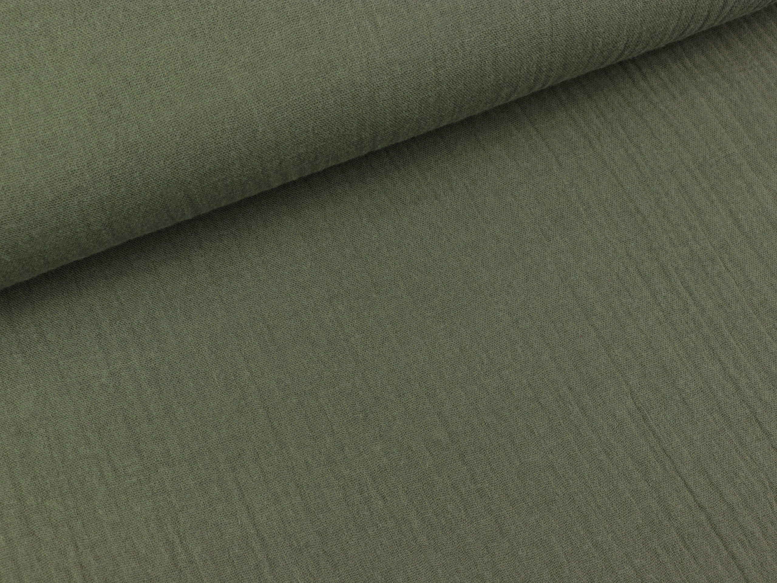 Reststück 26cm - Baumwoll Double Gauze Jenke khaki uni