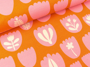 Der einzigartige Griff des Albstoffe Digitaldruck Baumwollsweat-Stoffes in French Terry Qualität wird durch den Einsatz hochwertigster GOTS Bio Garne und einem idealen Stoffgewicht des Druckgrundes erreicht. Der Stoff ist innen nicht angeraut. Entlang einer Webkante verläuft ein bunter Bordürenstreifen. Dieser hat eine Breite von ca. 12cm. Kollektion: Easygoing Farbe: luce rosso - meringa - rosa scuro Design: Tulips Material: 95%...