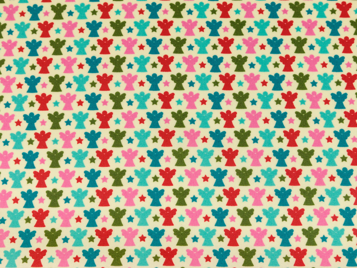 Laminierter Baumwollstoff"Joyful Christmas"Engel bunt auf creme