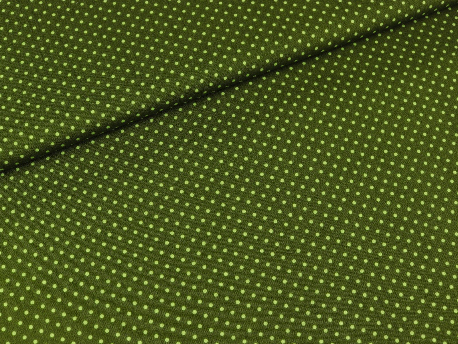 Baumwollpopeline mit hellgrünen Pünktchen.
