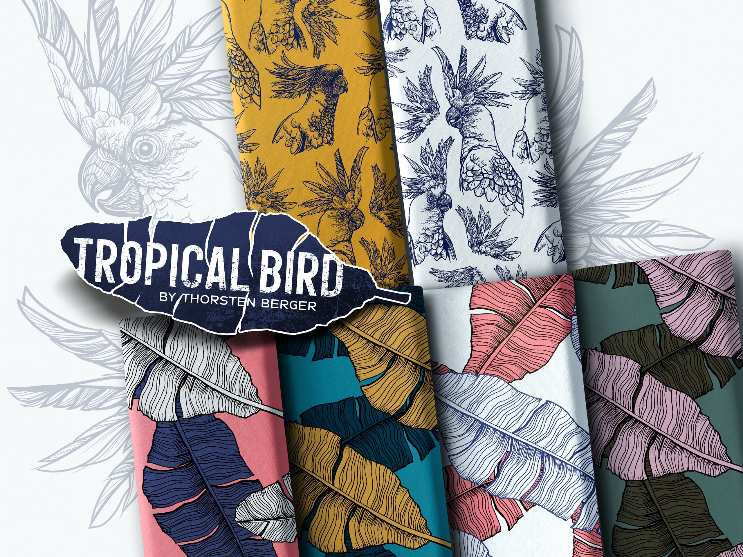 Hochwertiger bedruckter Viskosestoff aus der Kollektion "Tropical Bird" von Thorsten Berger für Swafing Stoffe.