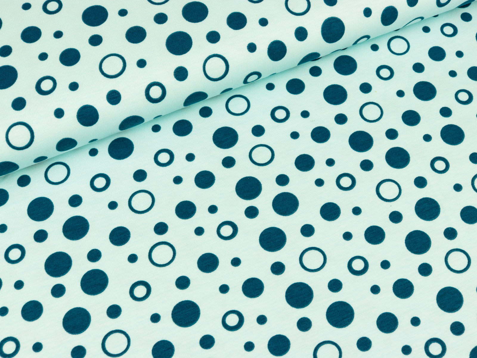 Toller hellblauer Baumwolljersey mit dunkelblauen Bubbledrops.