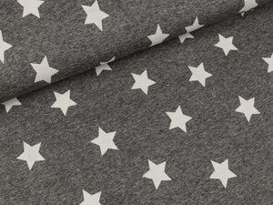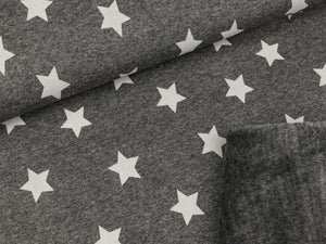 Wunderschöner weicher Wintersweat. Außen ist ein Jerseystoff, innen ein kuschelweicher Kurzflorplüsch. Farbe: dunkelgrau meliert - hellgrau Farbe innen: dunkelgrau Muster: Sterne Die Sterne haben einen Durchmesser von ca. 1,5 cm.Toll für Pulli`s und superweiche Kuschelhosen,Mützen etc. Material: 68% Polyester / 29% Baumwolle / 3% Elastan Breite: 150 cm Waschbar bei 30 Grad ohne Weichspüler.
