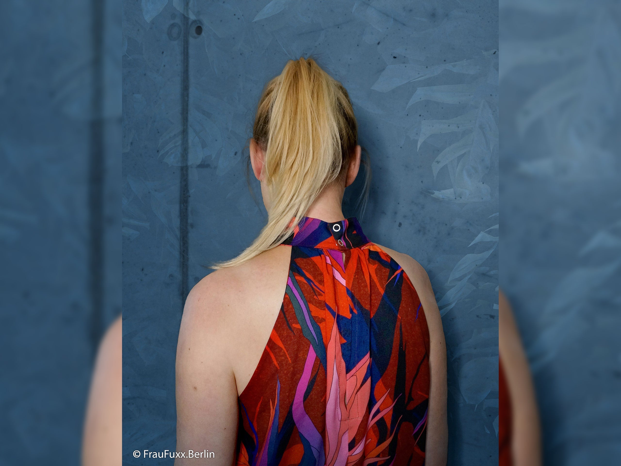 Der Stoff hat eine weiche Oberfläche und fällt leicht fließend.