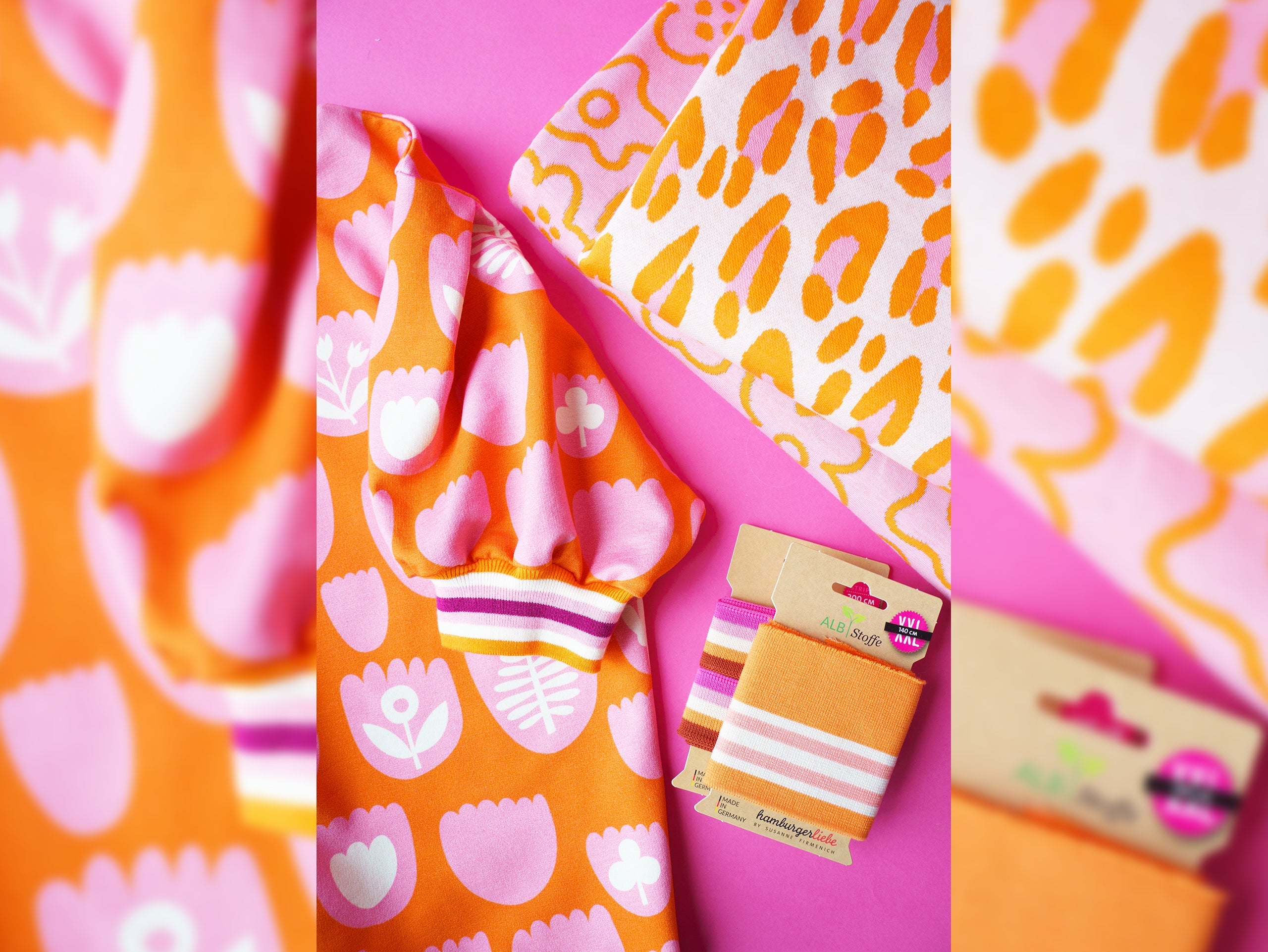 Der einzigartige Griff des Albstoffe Digitaldruck Baumwollsweat-Stoffes in French Terry Qualität wird durch den Einsatz hochwertigster GOTS Bio Garne und einem idealen Stoffgewicht des Druckgrundes erreicht. Der Stoff ist innen nicht angeraut.