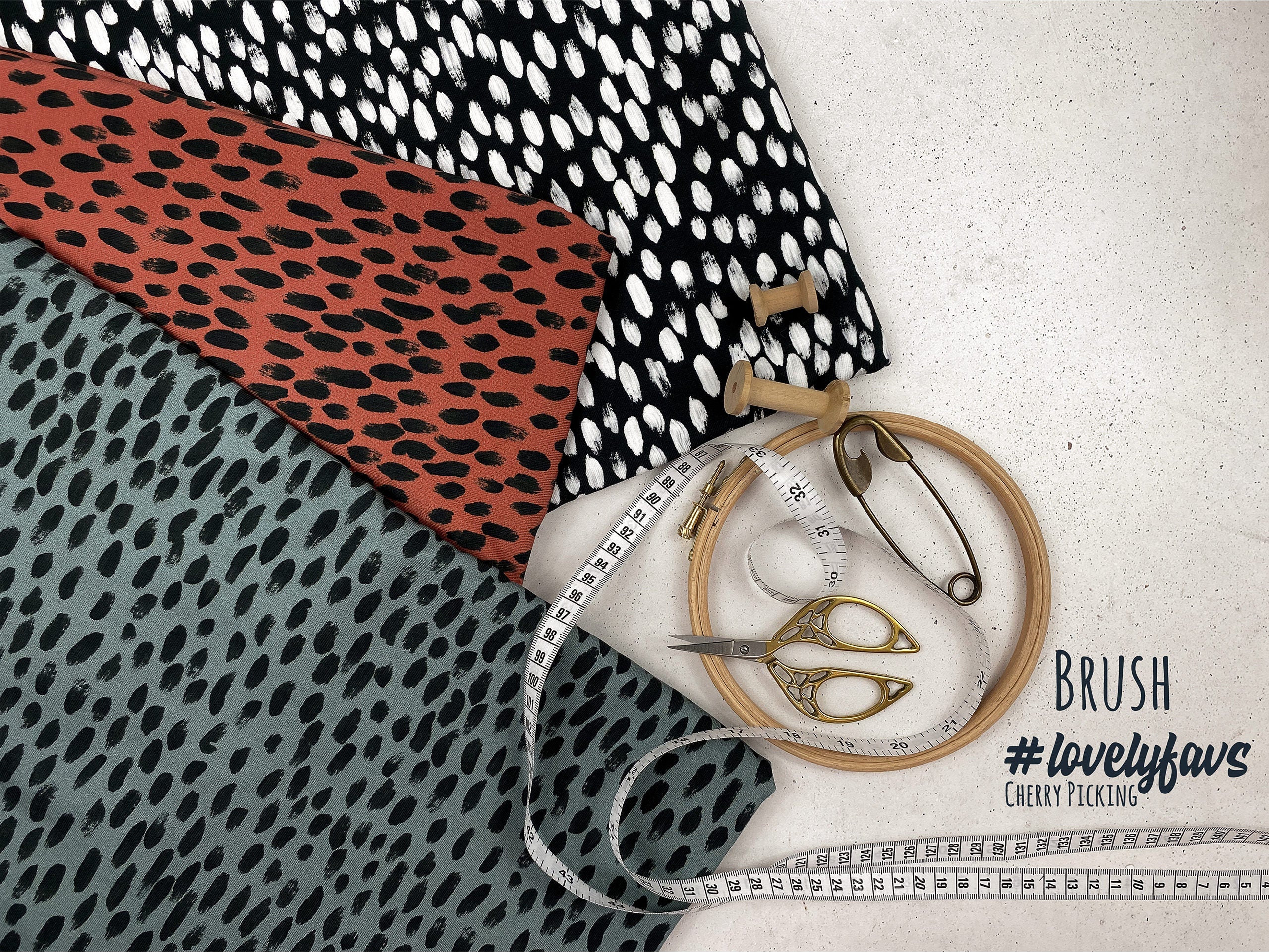 Weicher Modalsweat aus der Herbst-/ Winter Kollektion 2021/22 "#lovelyfavs" von Cherry Picking für Swafing Stoffe. Der Sweat ist innen nicht angeraut. Die Tupfen haben eine maximale Breite von ca. 0,7cm und maximale Länge von ca. 2cm. Kollektion: #lovelyfavs Muster: Brush Design: Cherry Picking Farbe: schwarz - terracotta Material: 60% Baumwolle / 35% Modal / 5% ElastanBreite: 150cm Gewicht: 265g/m ²...