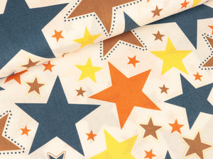 Wunderschöner weicher Baumwollstoff aus der Serie One for the Boys von Riley Blake. Der große orangefarbene Stern hat einen Durchmesser von ca. 8cm.Motiv: SterneFarbe: weiß-buntMaterial: 100%BaumwolleBreite: 110cmWaschbar bei 30 Grad.